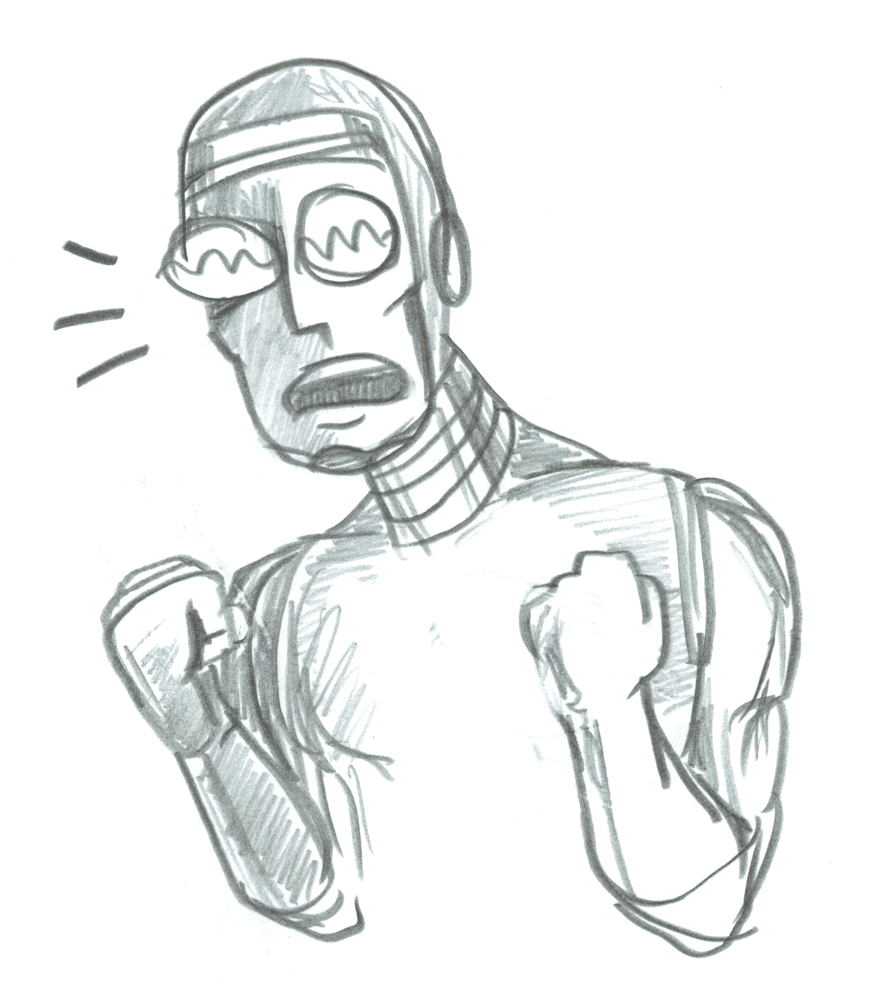 @HumanHand, an Internet friend, asked me to name my five most interesting robots. Of course, this was in the context of me blathering on about dancing like a robot, but this fact is unimportant to the discussion. Vowing to take this question seriously, I have taken it seriously; and given our communal love of robots, this seemed the proper forum in which to take it seriously. I have reduced the number to four, to make the challenge more challenging to conceptualize, and less challenging to execute (drawing is hard). X-51 (Machine Man; Aaron Stack)